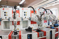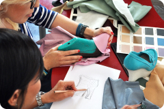 Zyklus der Produktion von Schuhen